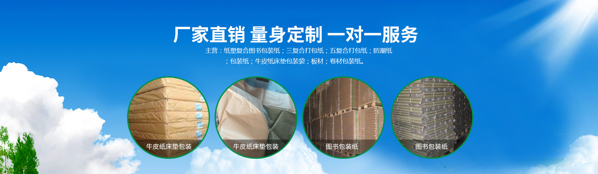 紙塑復(fù)合圖書包裝紙;三復(fù)合打包紙;五復(fù)合打包紙;防潮紙;包裝紙;牛皮紙床墊包裝袋;板材 ;卷材包裝紙。